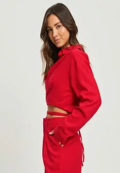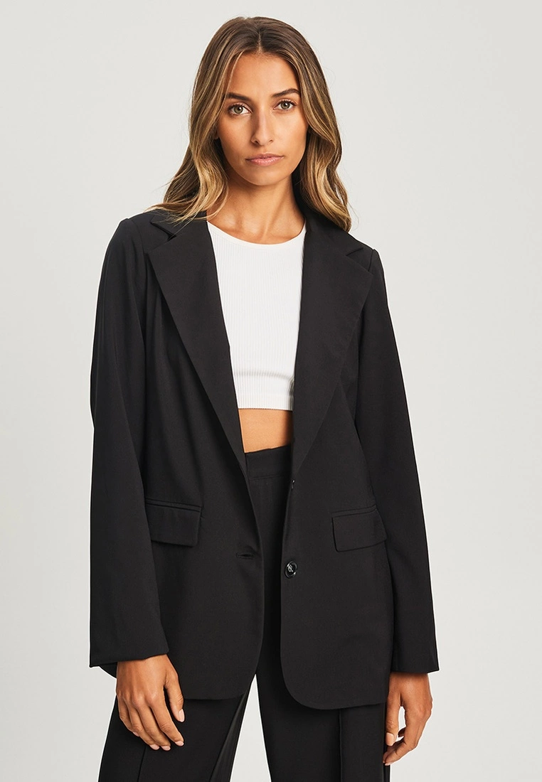 Our model is wearing a size AU 8 blazer. She usually takes a standard size AU 8/small, is 170cm tall, has a 81cm bust, a 61cm waist and 88cm hips.