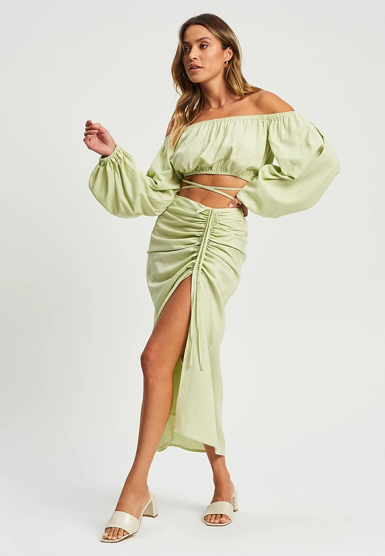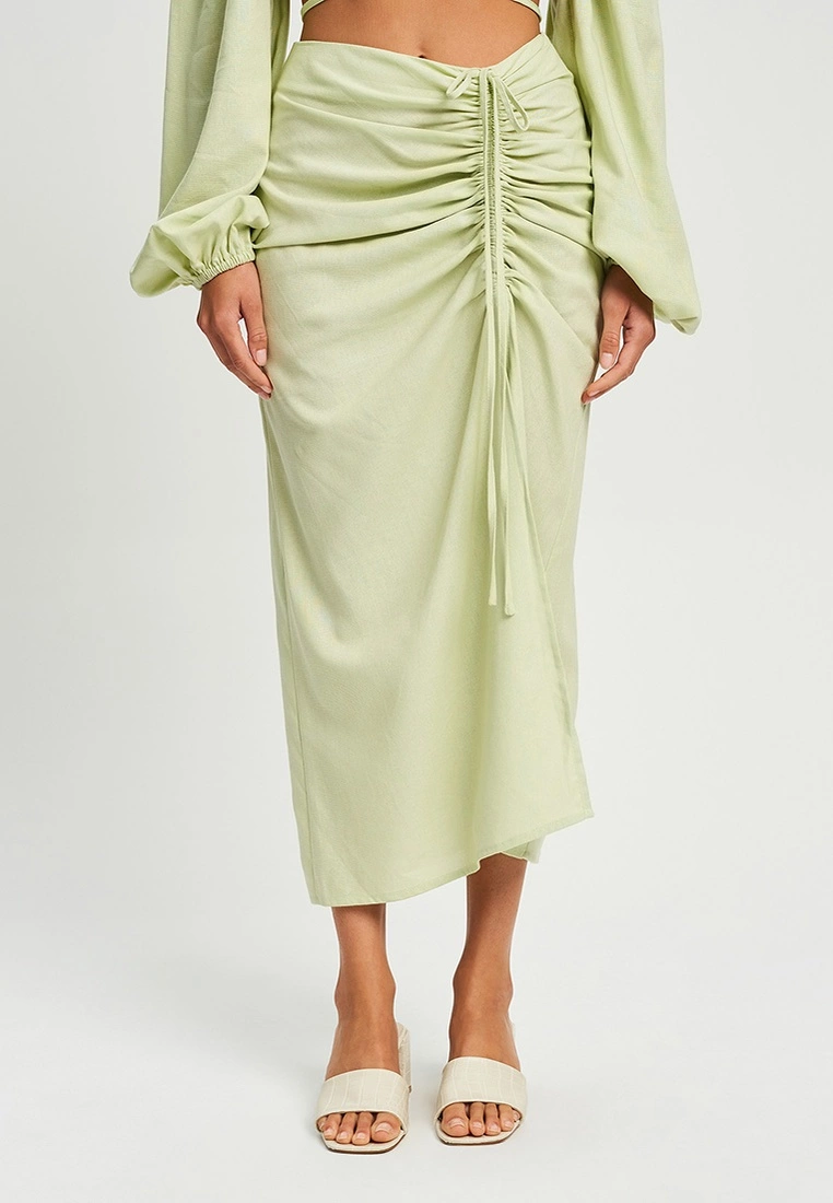 Our model is wearing a size AU 8 skirt. She usually takes a standard size AU 8/small, is 170cm tall, has a 89cm bust, a 61cm waist and 88cm hips.