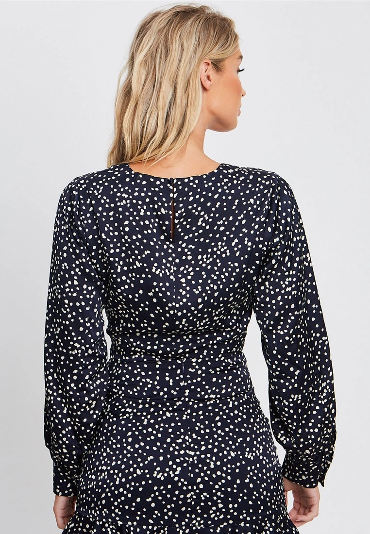 Our model is wearing a size AU 8 top. She usually takes a standard size AU 8/small, is 173cm tall, has a 79cm bust, a 58cm waist and 91cm hips.