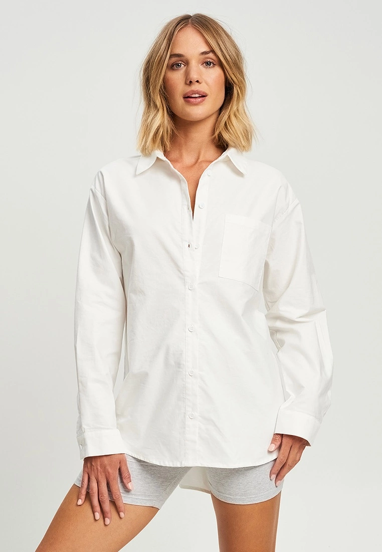 Our model is wearing a size AU 8 shirt. She usually takes a standard size AU 8/small, is 177cm tall, has a 81cm bust, a 64cm waist and 89cm hips.