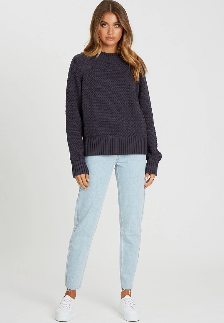 Our model is wearing size AU 8 jumper. She usually takes a standard AU 8/Small, is 5’9” (175cm) tall, has a 89cm bust, 64cm waist and a 89cm hips.
