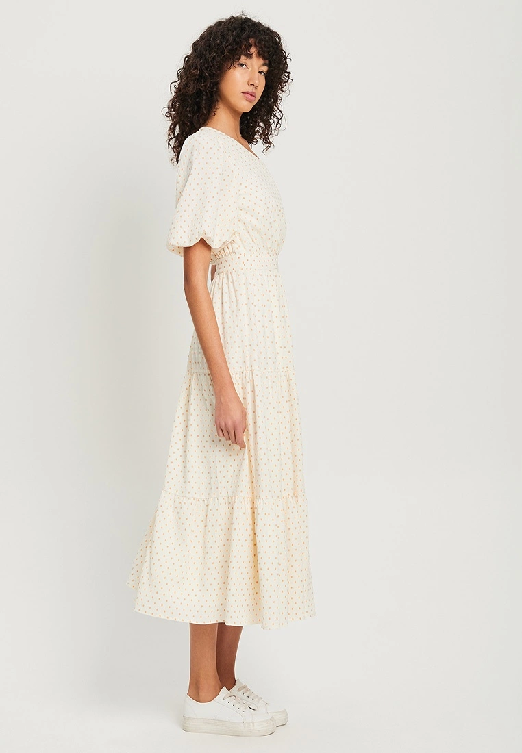 Our model is wearing a size AU 8 dress. She usually takes a standard size AU 8/small, is 5’11 (180cm) tall, has an 76cm bust, a 58cm waist and 85cm hips.