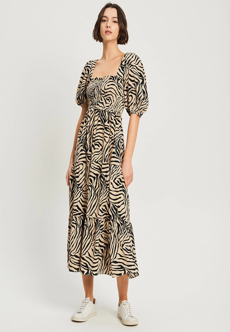 Our model is wearing a size AU 8 dress. She usually takes a standard size AU 8/small, is 5’9 (176cm) tall, has an 81cm bust, a 63cm waist and 88cm hips.