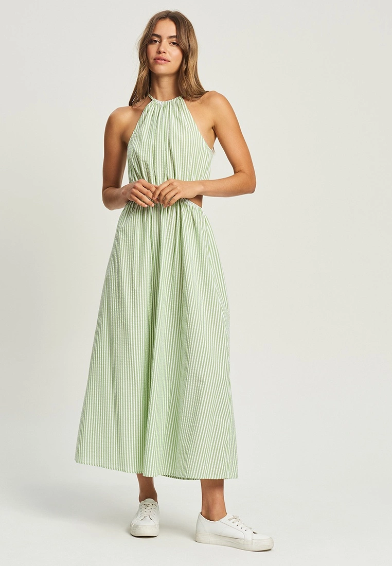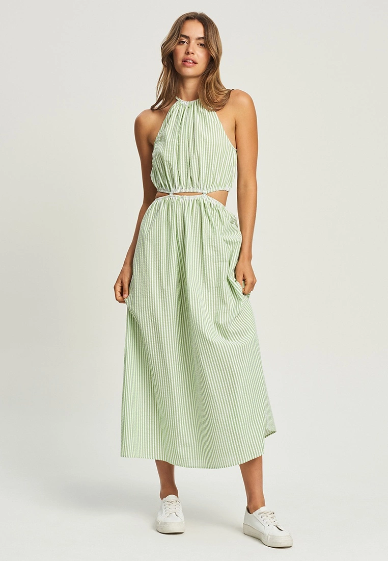 Our model is wearing a Size 8/S AU (4/S US). She usually wears a standard Size 8/S AU (4/S US), is 5’9.5 (175cm) tall, and has a 76cm bust, 61cm waist and 89cm hips.