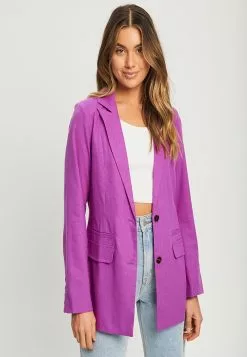Our model is wearing size AU 8 blazer. She usually takes a standard AU 8/Small, is 5’9” (175cm) tall, has a 89cm bust, 64cm waist and a 89cm hips.