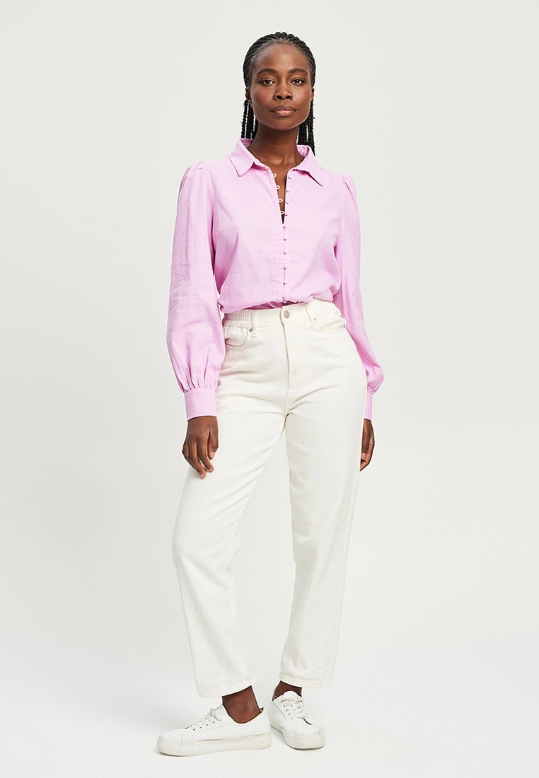 Our model is wearing a size AU 8 blouse. She usually takes a standard size AU 8/small, is 5’8 (172cm) tall, has an 83cm bust, a 66cm waist and 93cm hips.