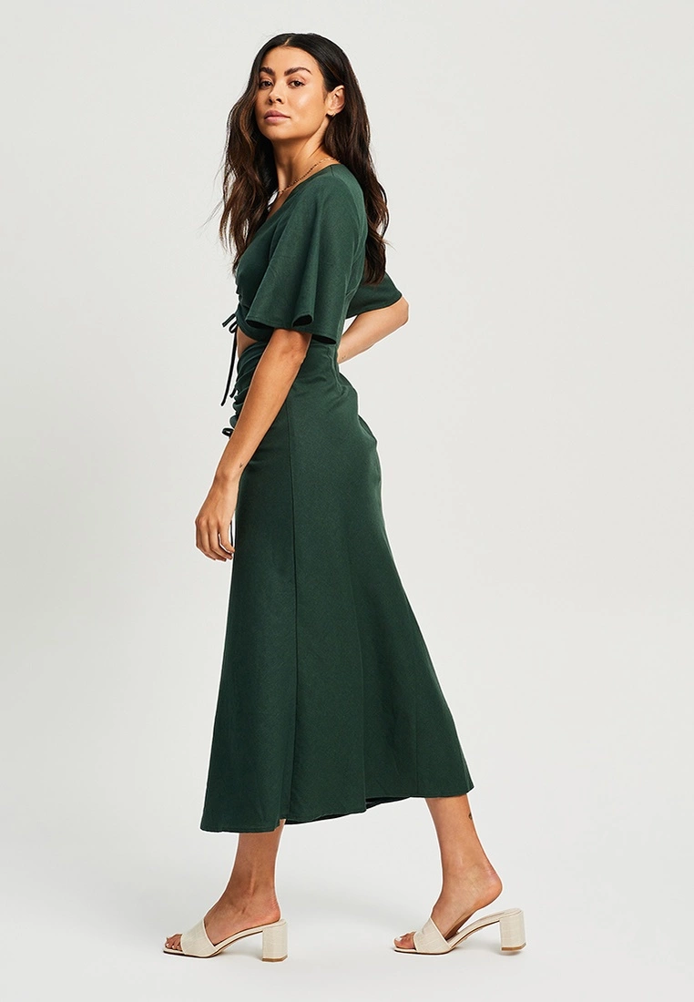 Our model is wearing a size AU 8 dress. She usually takes a standard size AU 8/small, is 175cm tall, has a 84cm bust, a 70cm waist and 86cm hips.- Length: 129cm
