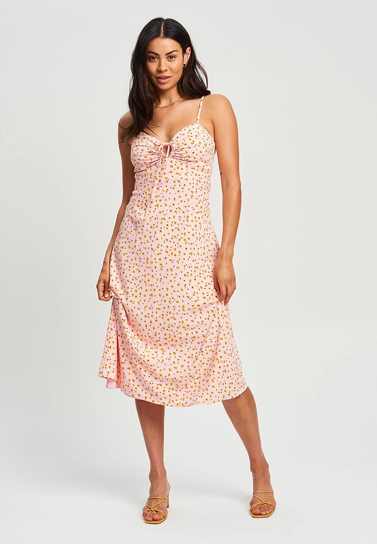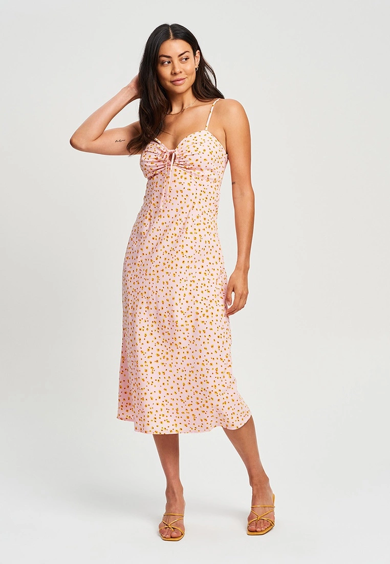 Our model is wearing a size AU 8 dress. She usually takes a standard size AU 8/small, is 175cm tall, has an 84cm bust, a 70cm waist and 86cm hips.- Length: 104cm (Apex to hem)