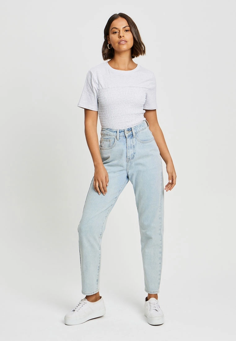 Our model is wearing a size AU 8 tee. She usually takes a standard size AU 8/small, is 170cm tall, has a 81cm bust, a 61cm waist and 88cm hips.
